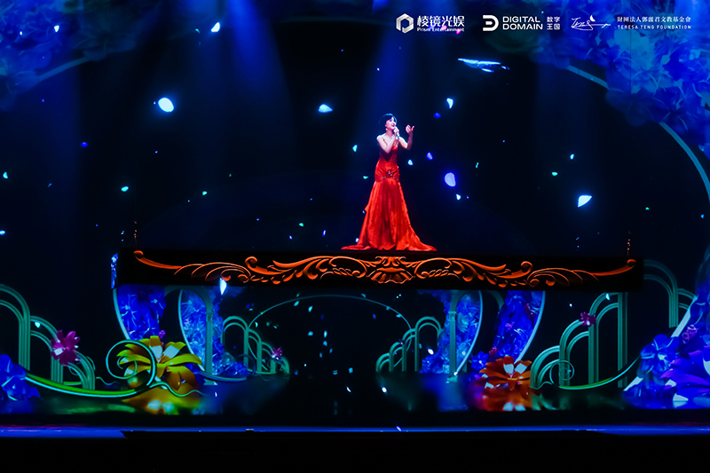 Teresa Teng · The Legend enables the audience to enjoy the 360-degree hyper immersive experience through its first adoption of“holographic and panoramic” stage design. Due to the circumambient stage, the audience is fully immersed in the shadow of the star at centre stage. Playing on a swing, walking into the lotus pond, wandering under the moonlight–across time and space–the vivid movements and enchanting melodies of virtual Teresa Teng bring the audience a visual and aural feast. The concert also features a virtual host named “Dream”. As a super fan of Teng, she is responsible for the real-time interaction with the audiences.
