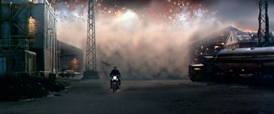 The threat of stolen nuclear secrets keeps the action moving along at a brisk pace and Digital Domain enhanced a miniature set with CG animation in creating an atomic explosion that Eddie (Keanu Reeves) barely escapes.