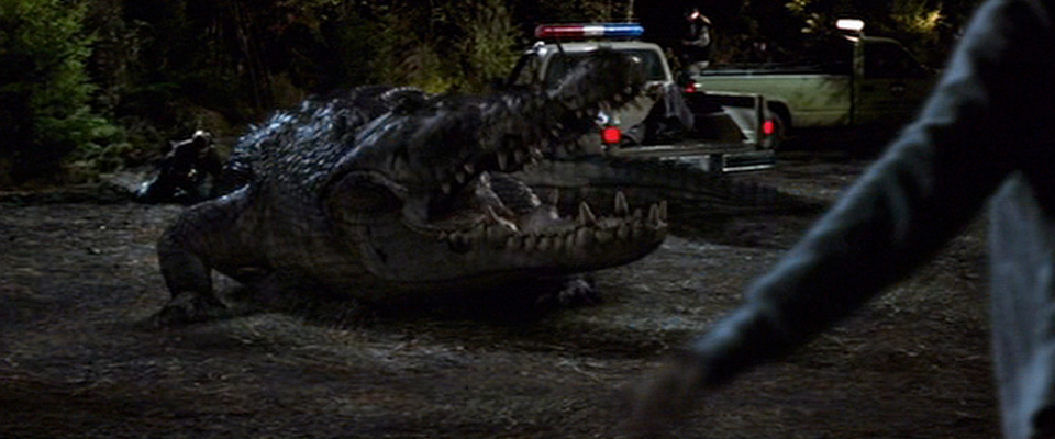 Digital Domain bring to life a giant crocodile through the use of CG animation. In addition to the crocodile itself, extensive CG water work was done as the crocodile dives in and out of the lake. One key scene involves a CG helicopter that the crocodile attacks as it sits helpless on the surface of the water.